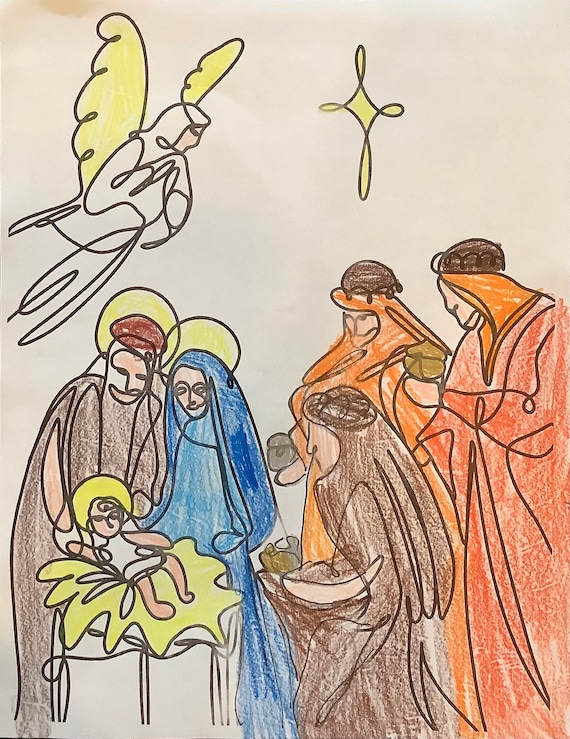 Catholic Minimalist Epiphany Holy Family Nativity Coloring Page For Kids 6 And Adults Etsy